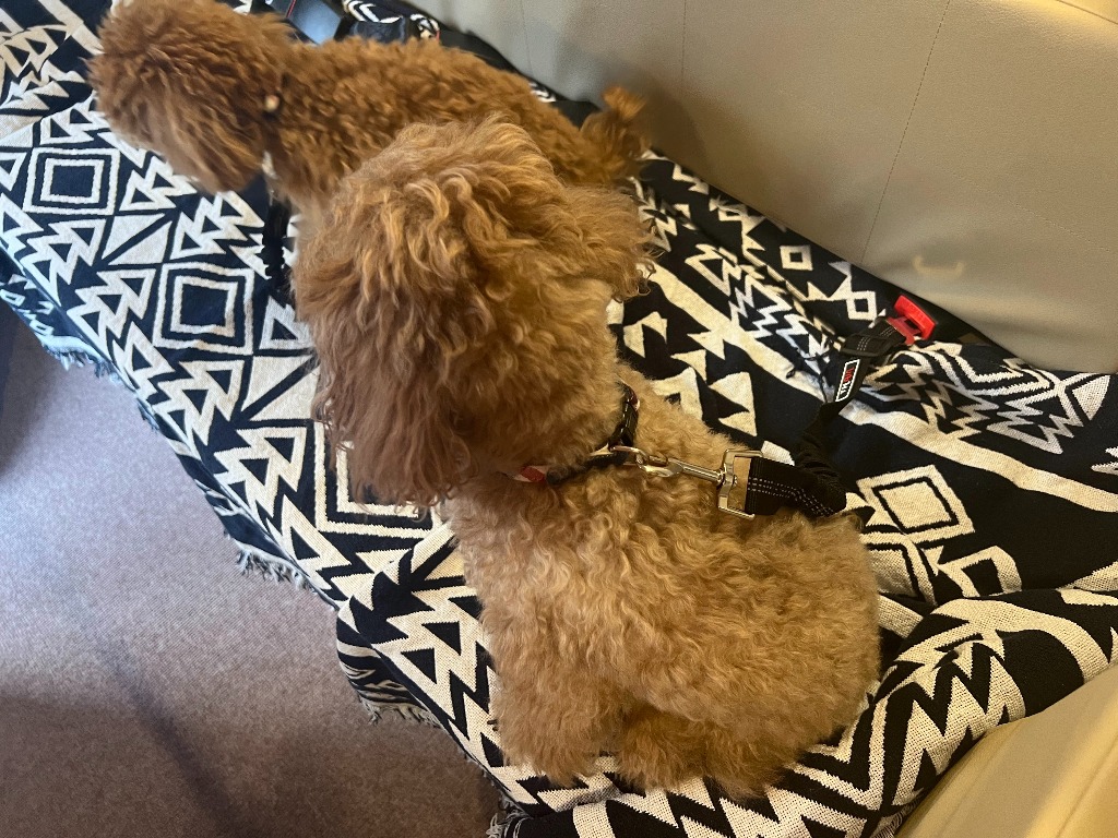 先日ワンちゃん用のシートベルトをキャンピングカーへ取り付けました^^